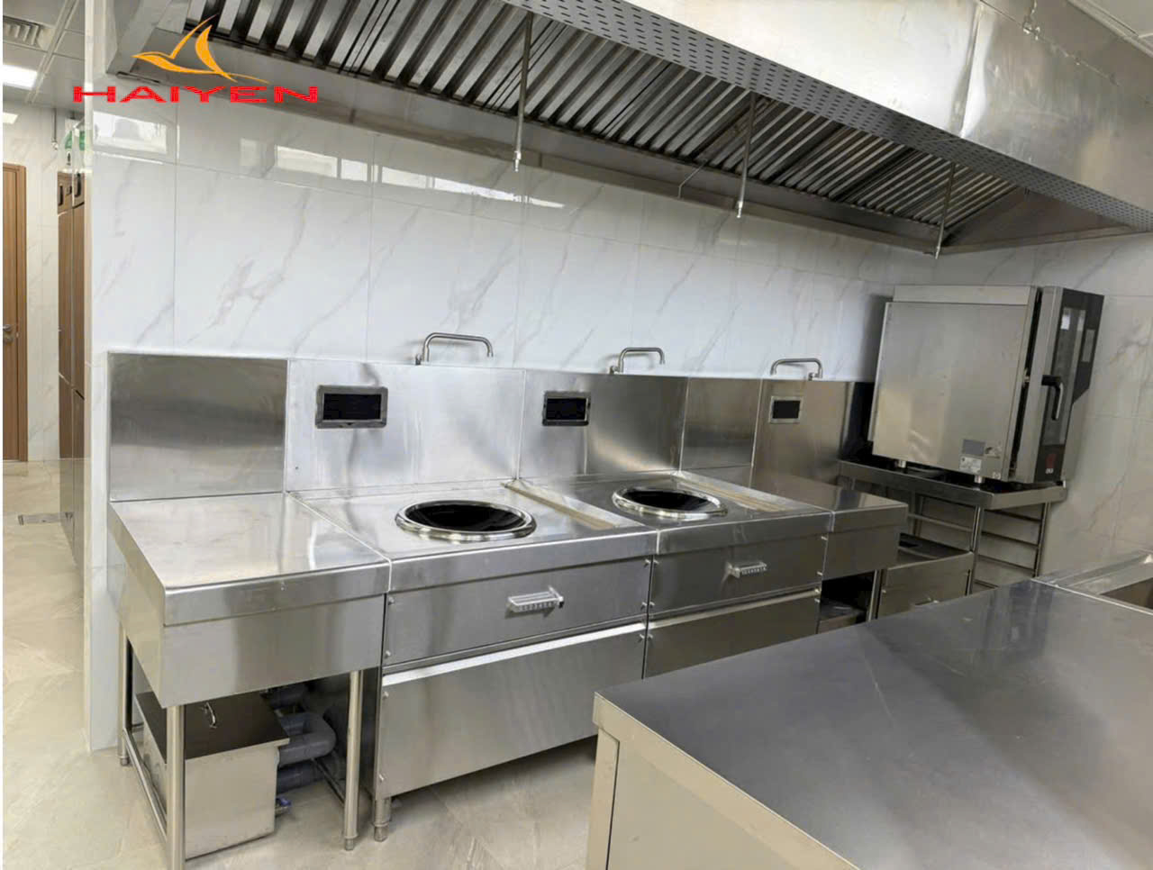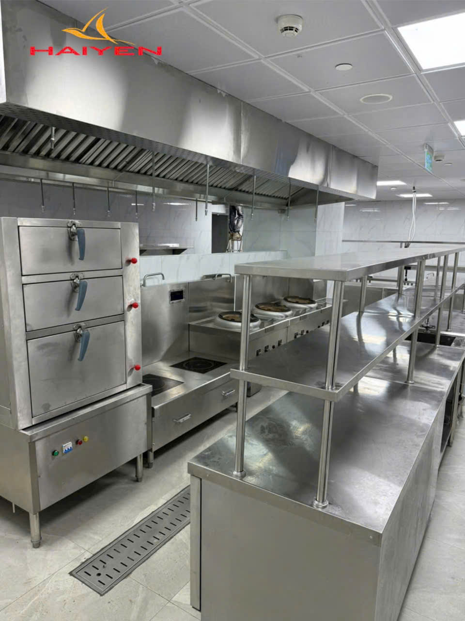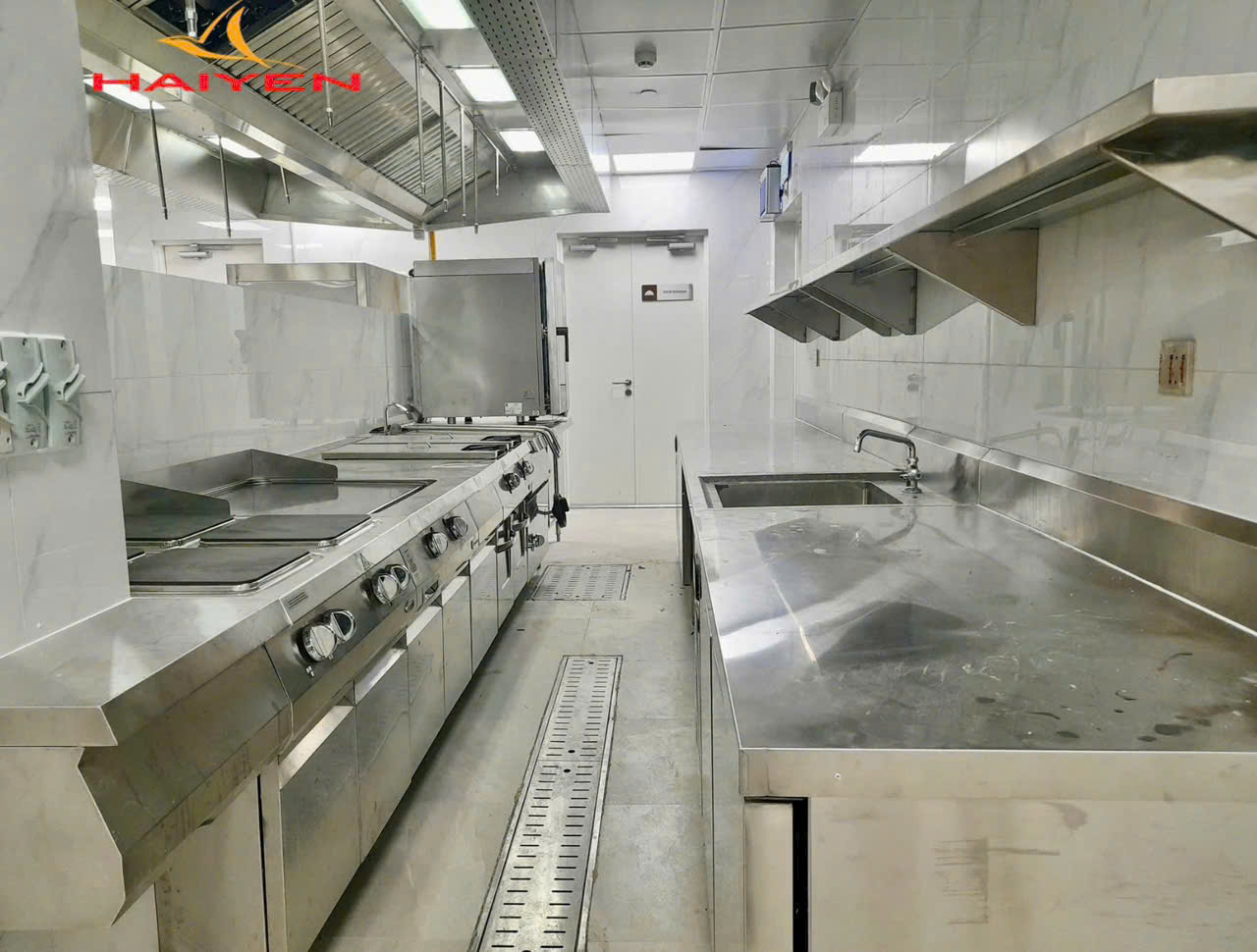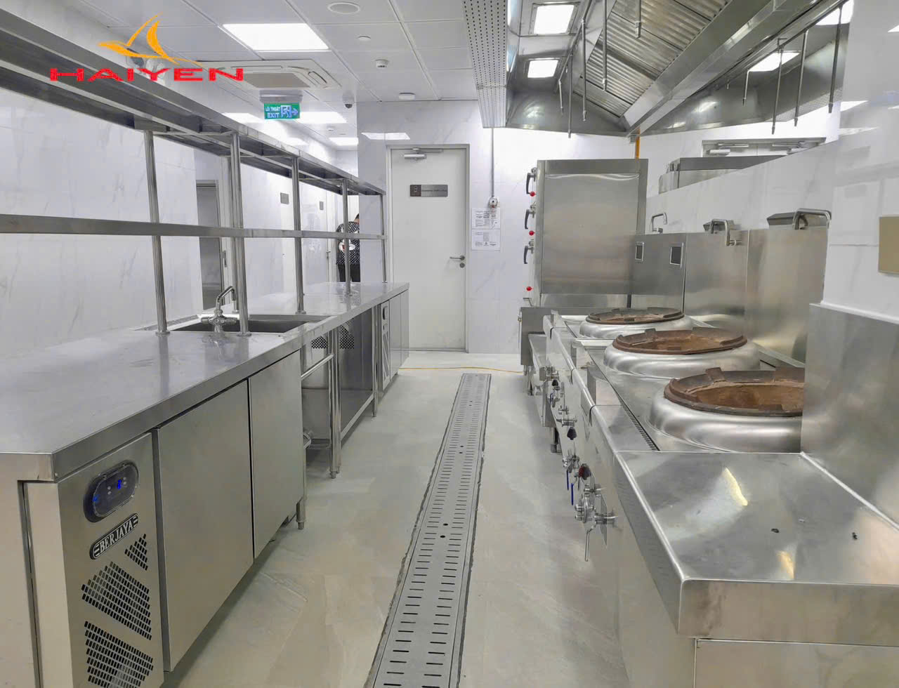 Toàn bộ các bếp của hệ thống nhà hàng tại Lasong – từ bếp nóng, bếp lạnh, bếp chế biến, bar cho đến khu vực rửa – đều được Hải Yến thiết kế công năng và lắp đặt đồng bộ, đảm bảo vận hành tối ưu, an toàn và bền bỉ.