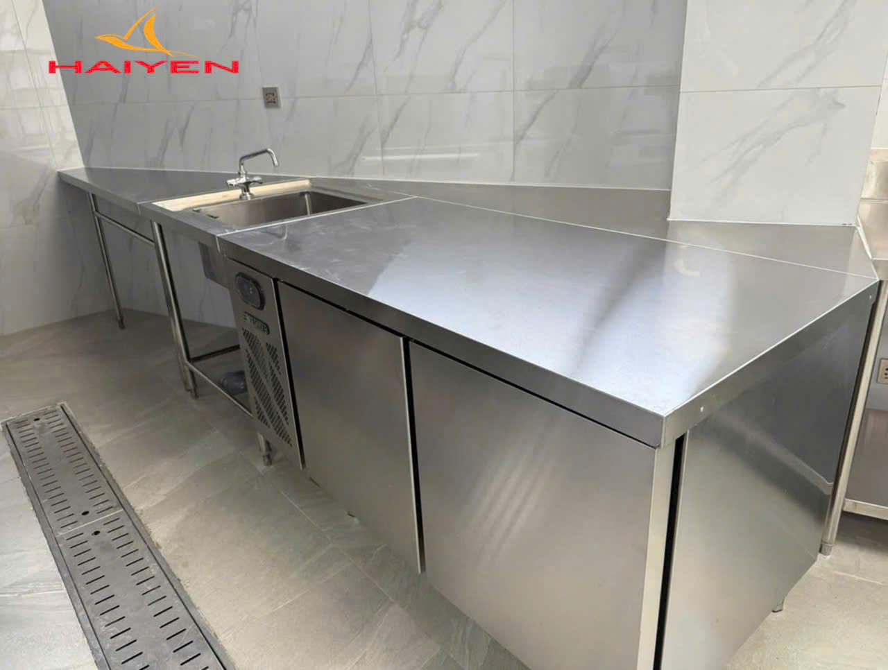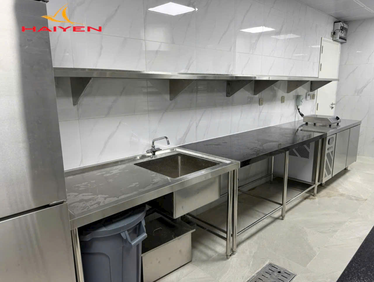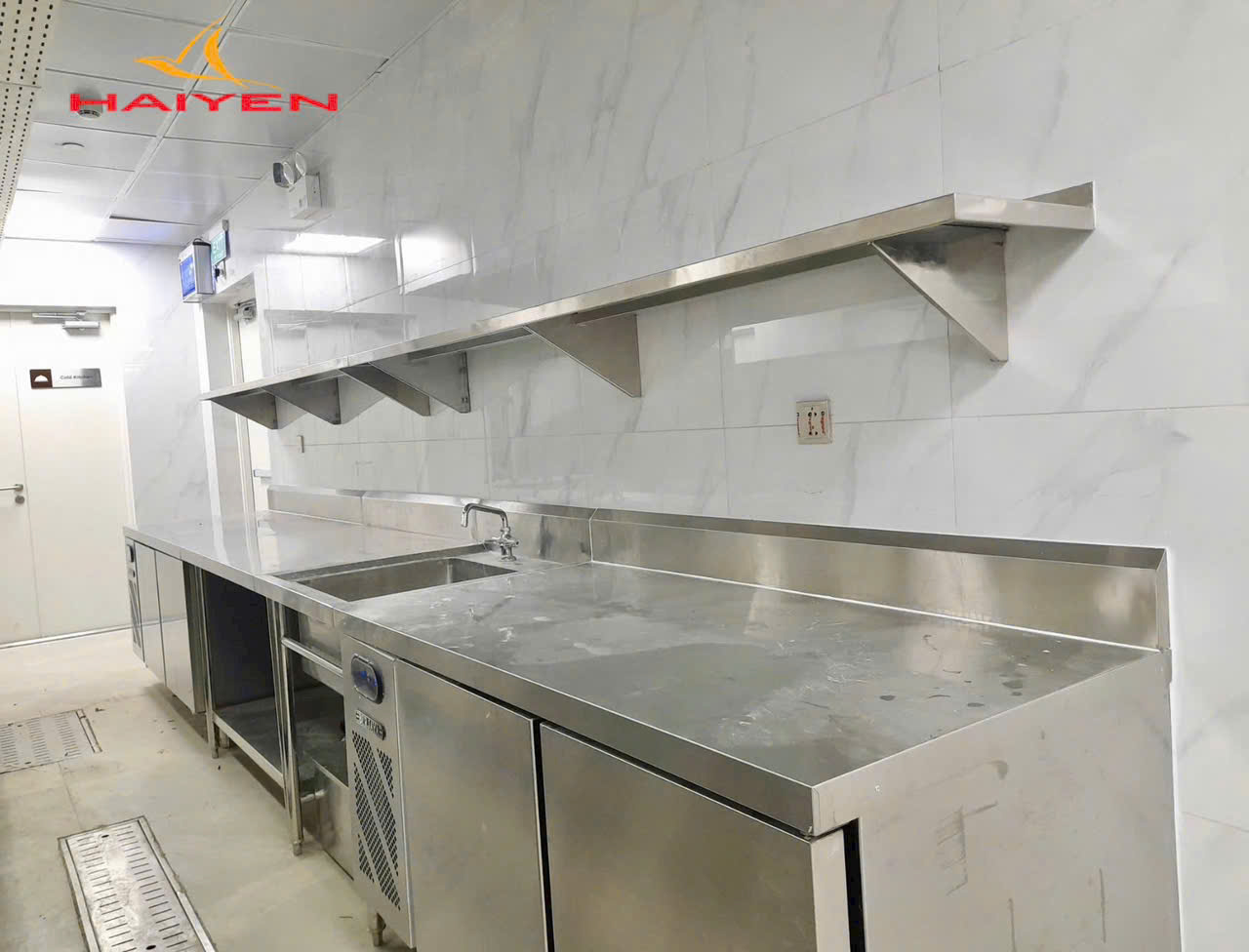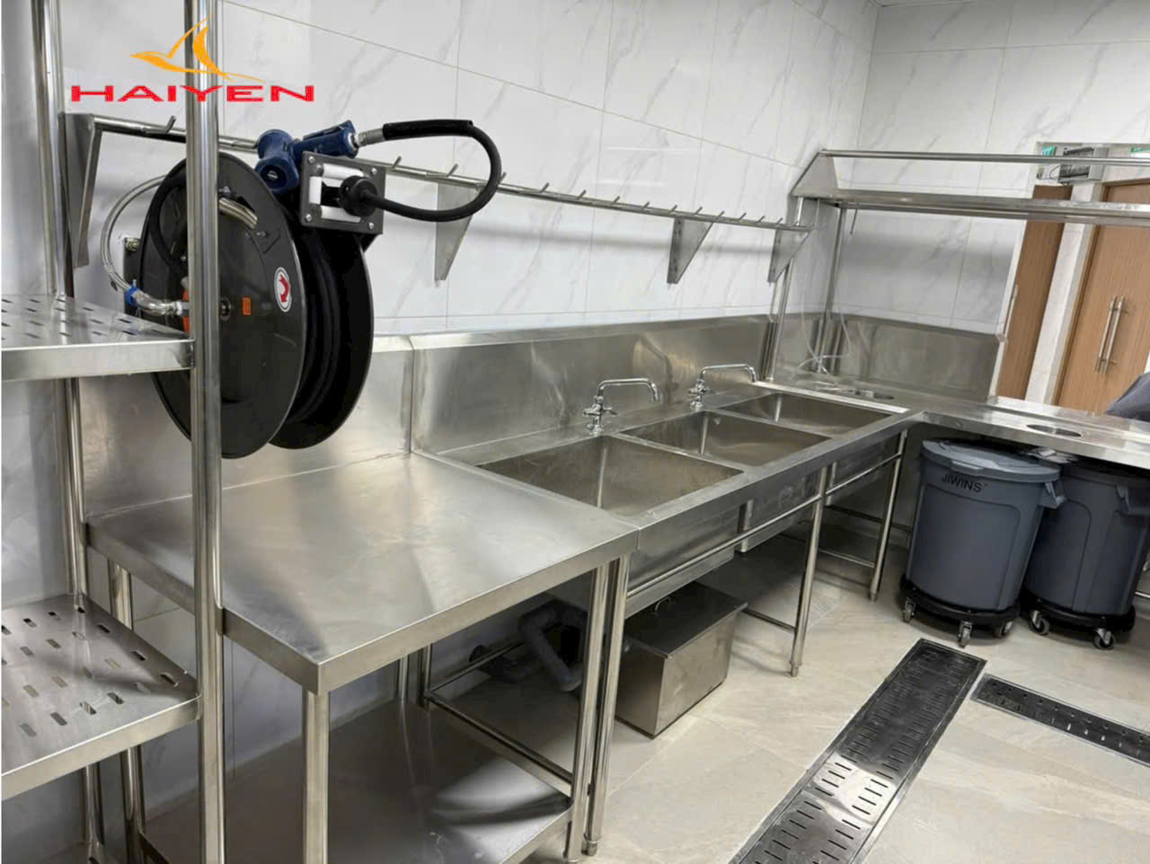 Toàn bộ các bếp của hệ thống nhà hàng tại Lasong – từ bếp nóng, bếp lạnh, bếp chế biến, bar cho đến khu vực rửa – đều được Hải Yến thiết kế công năng và lắp đặt đồng bộ, đảm bảo vận hành tối ưu, an toàn và bền bỉ.